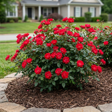 Zepeti Rose (Rosa 'Zepeti') - Compact, glossy, and covered in vivid red blooms all season.